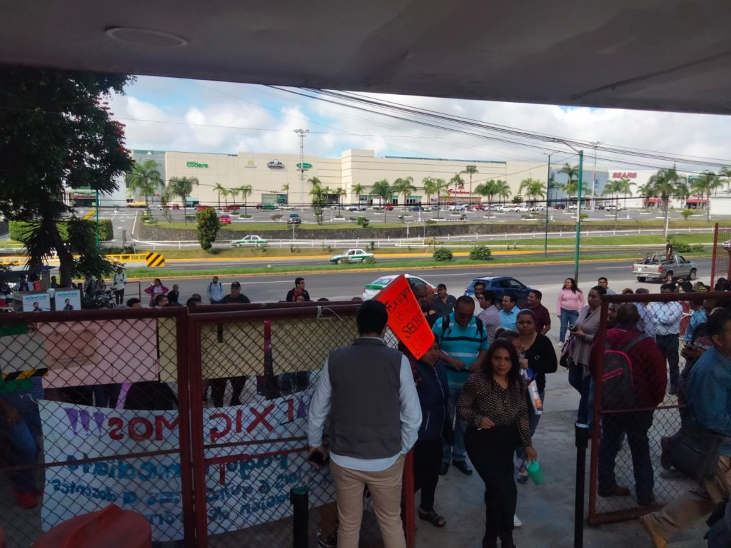 Bloquearon hasta las 9:30 las oficinas centrales de la Secretaría de Educación de Veracruz (SEV), para demandar solución a los problemas que están padeciendo por la mala interpretación que las autoridades educativas correspondientes hacen de la Ley General del Sistema para la Carrera de las Maestras y los Maestros.