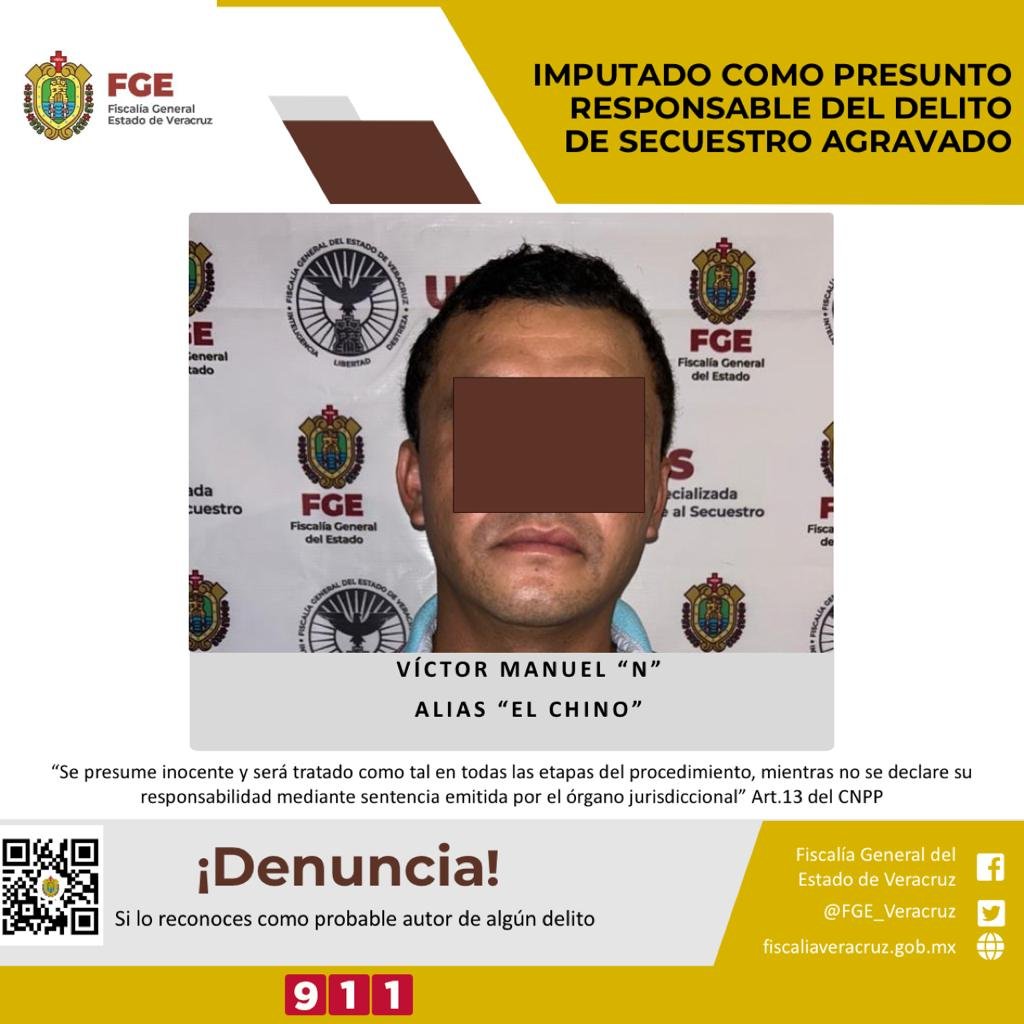 Poza Rica, Ver., 21 de octubre 2023.- La Unidad Especializada en Combate al Secuestro realizó imputación en contra de Víctor Manuel “N” alias “El Chino” como presunto responsable del delito de secuestro agravado en agravio de la víctima identificada con las iniciales M.A.M.C.