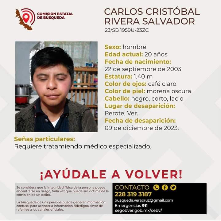 Desde el día de ayer se habían desplegado cuerpos de auxilio por la tarde, en un operativo de búsqueda en colaboración con diversas instituciones y voluntarios para localiza unr al joven Carlos Cristobal Rivera Salvador, desaparecido en la zona de Caja de Agua.