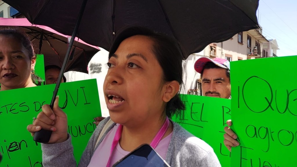 Laura Urbano Bravo estudiante de la primera generación de la licenciatura en Agroecologia y Soberanía Alimentaria, de la Universidad Veracruzana Intercultural , junto con sus compañeros protestaron en el centro de Xalapa, entre las calles Zaragoza y Sebastian Camacho, frente a la torre de Seguridad Pública.