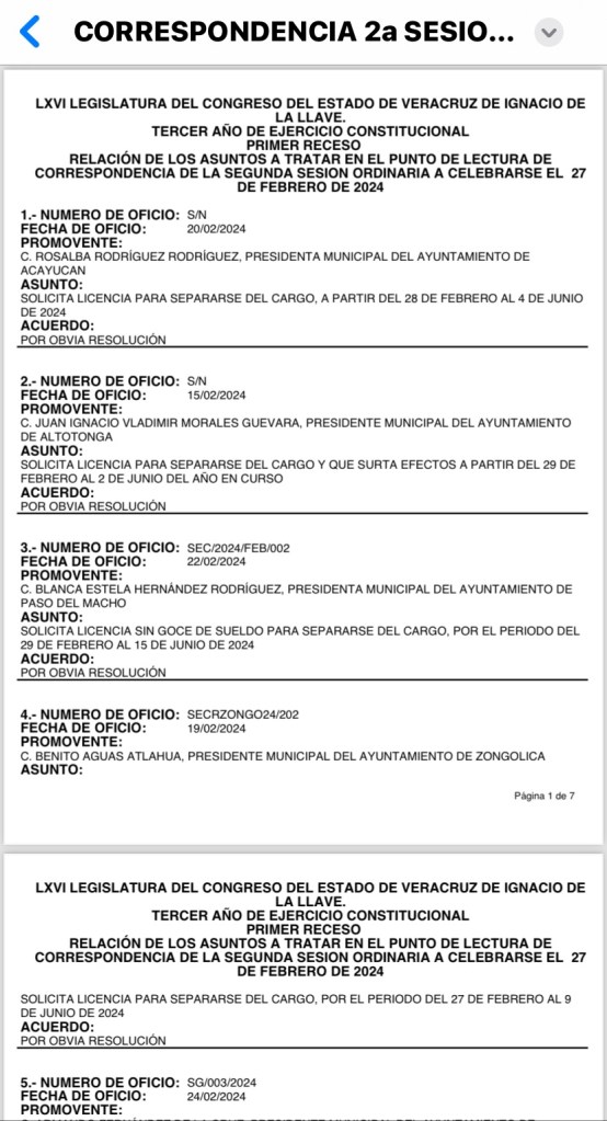 A unos días de que inicien de manera formal las campañas electorales federales, la diputación permanente en el Congreso de Veracruz recibió las solicitudes de los alcaldes de Acayucan, Altotonga, Paso del Macho, Zongolica, Chicontepec, Medellín y Playa Vicente.