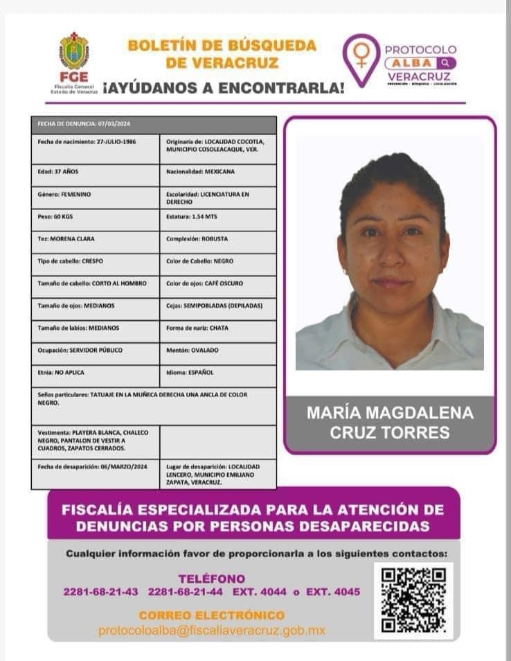 Este sábado, fue localizado el cuerpo sin vida de María Magdalena, agente de la Fuerza Civil que desapareció el 6 de marzo cuando salía de su centro de trabajo en la localidad de El Lencero.