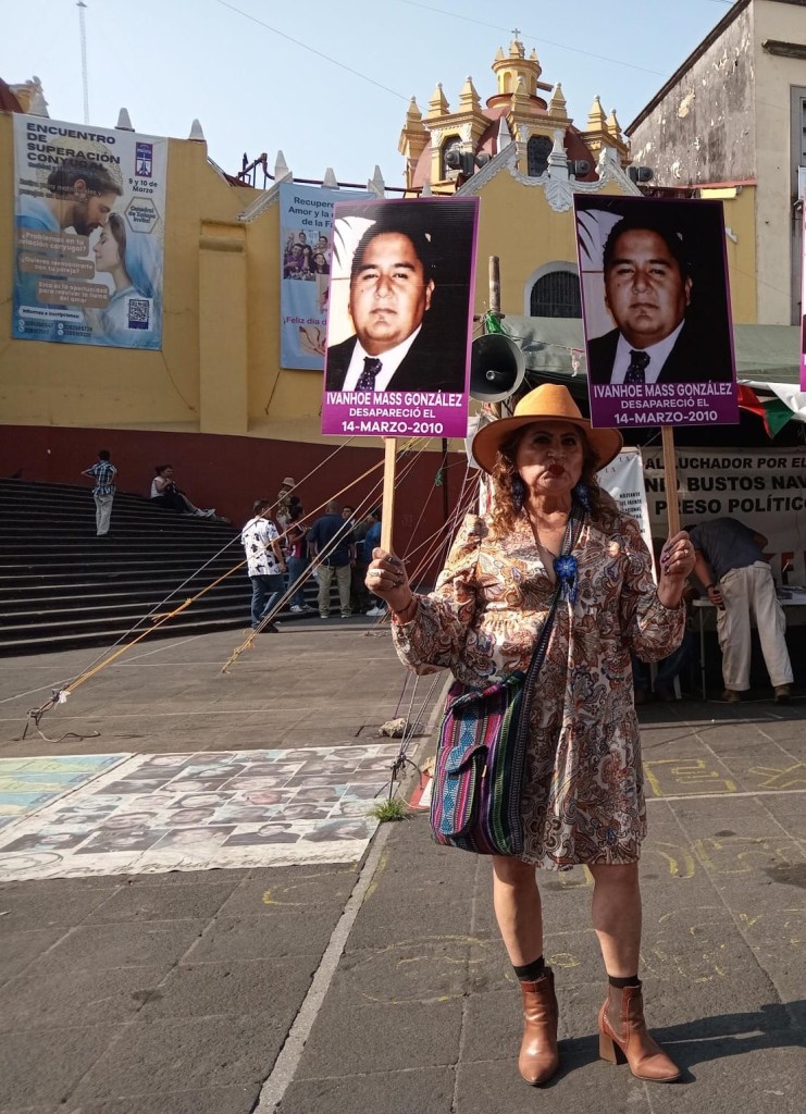 Xalapa, Ver.-Familiares de Ivanhoe Mass González se manifestaron en la plaza Sebastián Lerdo de Tejada de la ciudad de Xalapa para conmemorar su desaparición, ocurrida hace 14 años, explicó su madre, la señora Sara González Rodríguez.