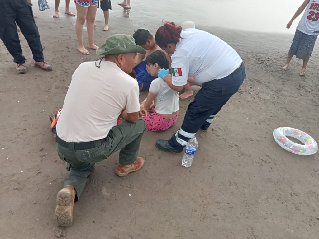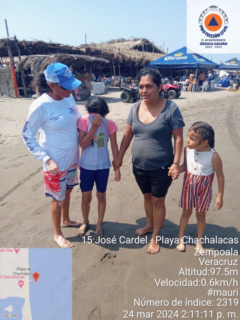 Se localizó con bien a la niña Itzel Peñaloza de 10, quien se encontraba deambulando en la playa, su mamá se encontraba como a 100 metros, la mamá Margarita Romero de Llano Grande, Veracruz.