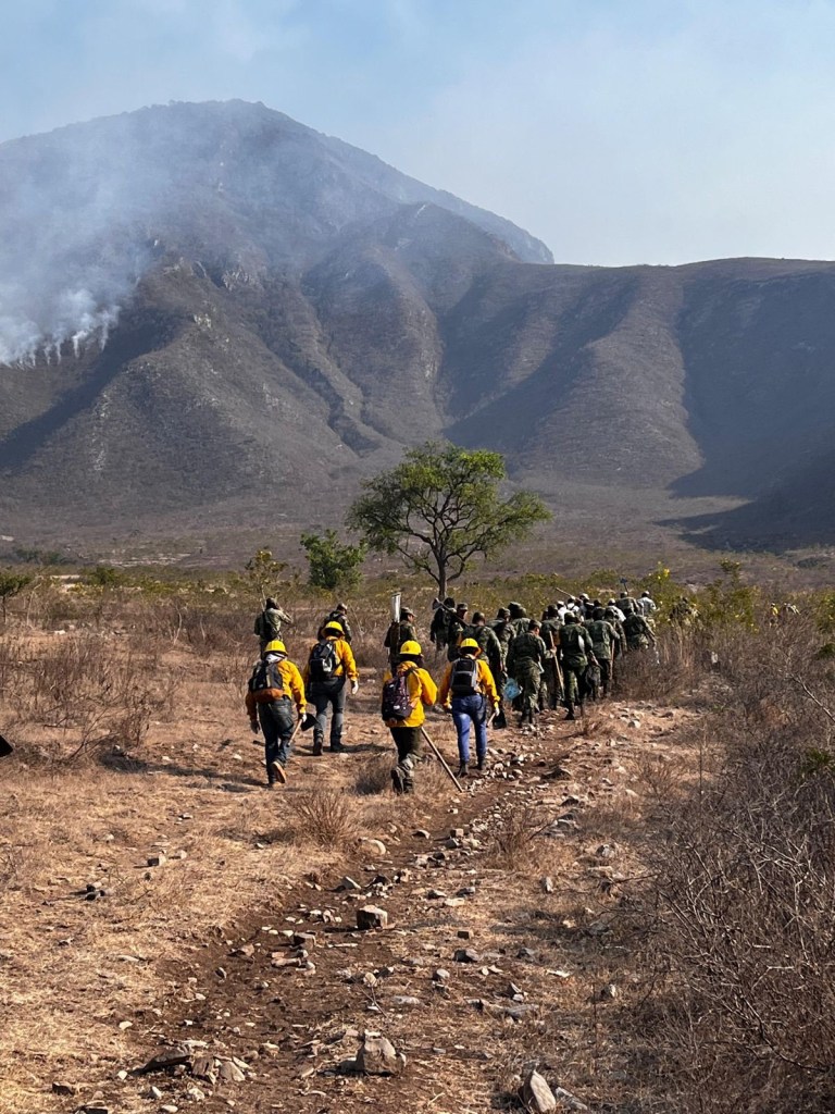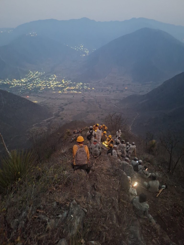 El día de ayer 482 elementos concentrados en la División Alfa se sumaron a las labores de combate al fuego, con el apoyo de 97 descargas aéreas de las 3 aeronaves presentes, y el día de hoy las labores se reiniciaron a las 6:00 hrs para las labores en el último incendio activo.