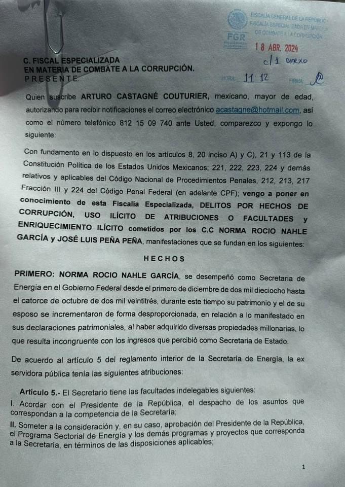 Por propiedades en Estados Unidos en Tabasco , Veracruz y Nuevo León, por montos que alcanzan en conjunto los 100 millones de pesos, fue denunciada por el delito de enriquecimiento ilícito, la exsecretaria de Energía, Norma Rocío Nahle García.