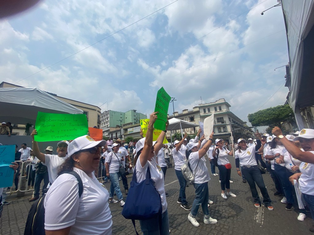 El sindicato SDTEV fue uno de los que protestó contra el gobierno de Veracruz, porque durante el último año han recibido a destiempo sus pagos mensuales, y entregaron casi al final del desfile un pliego petitorio al gobernador Cuitláhuac García Jiménez.