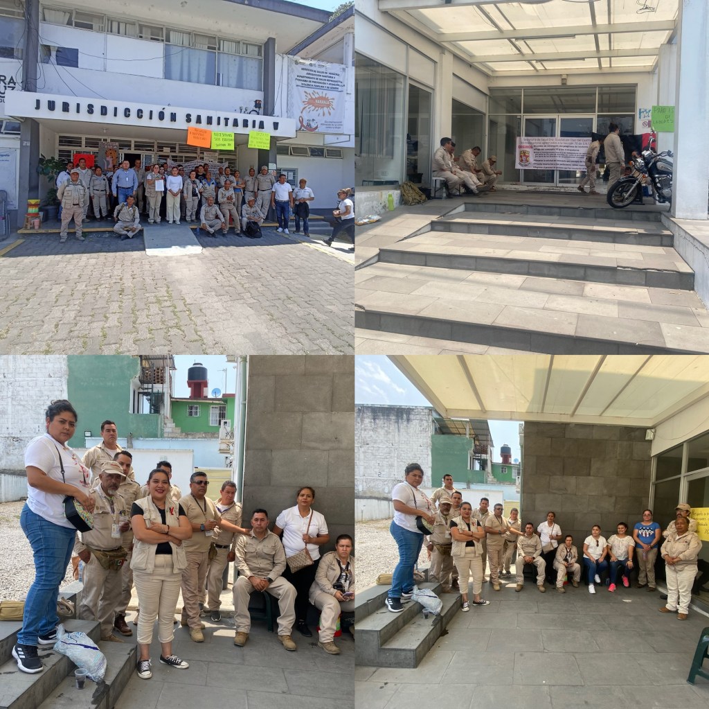 “Fuera Villa!” gritaban trabajadores que mantienen tomada la Jurisdicción 5 de Banderilla, piden la destitución de José Israel Villa Campos, coordinador jurisdiccional del programa de Vectores. Aseguran expone al personal de Vectores sin seguro, incurre en acoso. Acusan a Villa también de ignorar las quejas de trabajadores que han sido atacados con armas en las calles. Les dan solo un lápiz y media goma para cumplir con su trabajo.