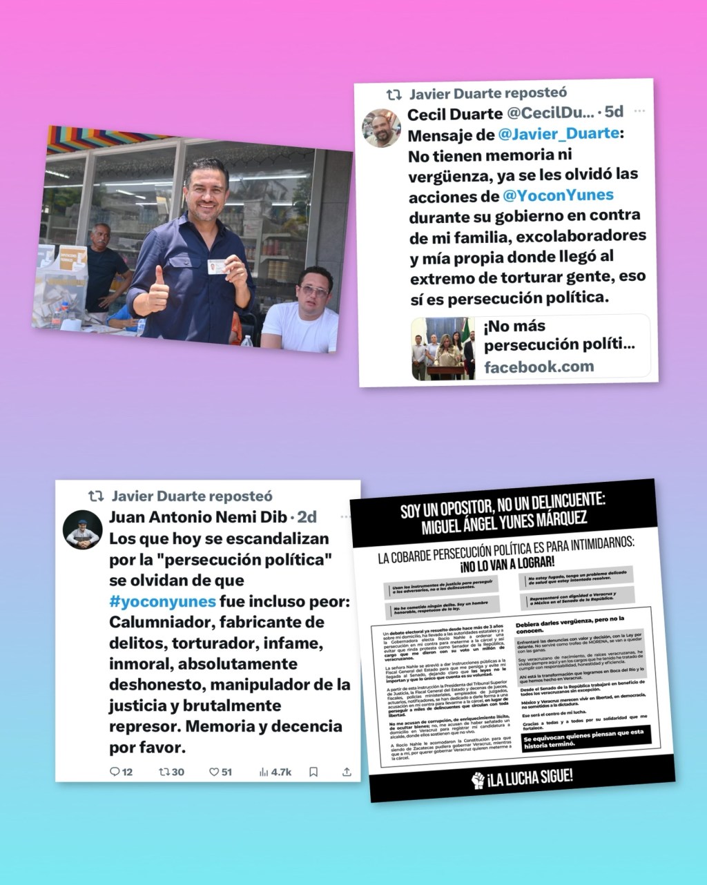 Pese a haber demostrado un juez federal que fue culpable Duarte de los cargos, usa su cuenta de X para pedir “justicia”, aunque no fue el gobierno de Yunes Linares quien lo apresó, sino una denuncia de la Auditoría Superior de la Federación (ASF) ante FGR y pruebas que terminaron por perseguirlo con la Interpol, y ser finalmente detenido en Guatemala en abril de 2017.