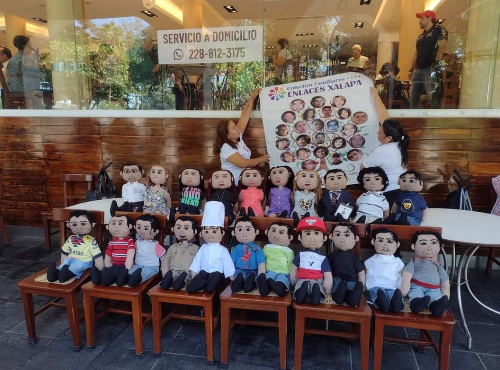 Integrantes del Colectivo Enlaces Xalapa mostraron el resultado de bordar durante un año “muñecos sanadores”; esto es, muñecos que representa a sus familiares desaparecidos .