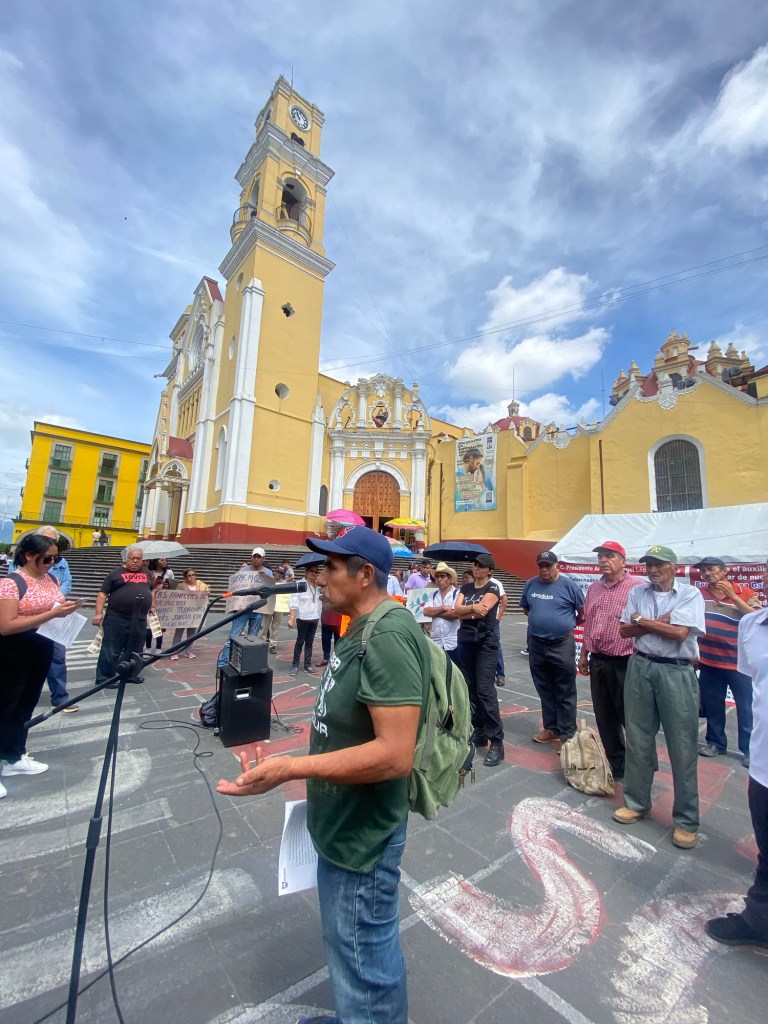 Cafetaleros protestaron en Plaza Lerdo en Xalapa porque sigue el proceso legal en su contra por el incendio de AMSA en Ixhuatlán del Café hace un año. Los liberaron pero siguen sujetos a proceso.