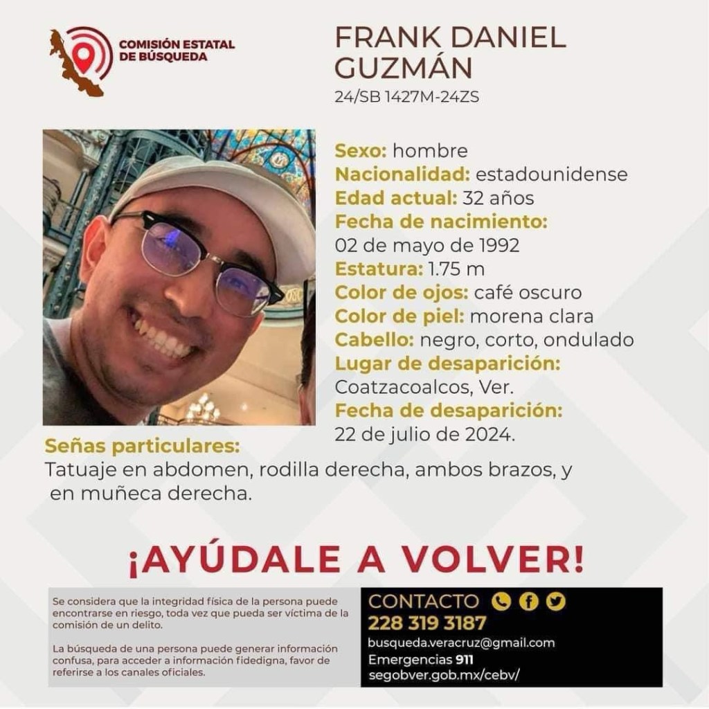 Por otro lado, también se está investigando la desaparición de una pareja estadounidense, Frank Guzmán y su esposa Caroline Katba, quienes viajaban a Chile y perdieron contacto con sus familiares en julio. Aunque se cree que desaparecieron en Coatzacoalcos, Veracruz, no hay certeza de que haya ocurrido en territorio veracruzano.