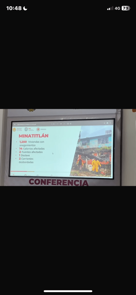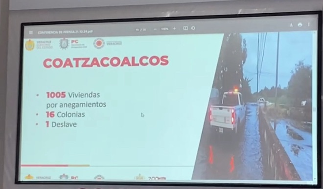En Minatitlán, se reportan mil 250 viviendas con anegamientos, 14 colonias afectadas, dos puentes dañados, un deslave y dos corrientes desbordadas. En Coatzacoalcos, mil 5 viviendas están afectadas por anegamientos, junto con 16 colonias y un deslave.
