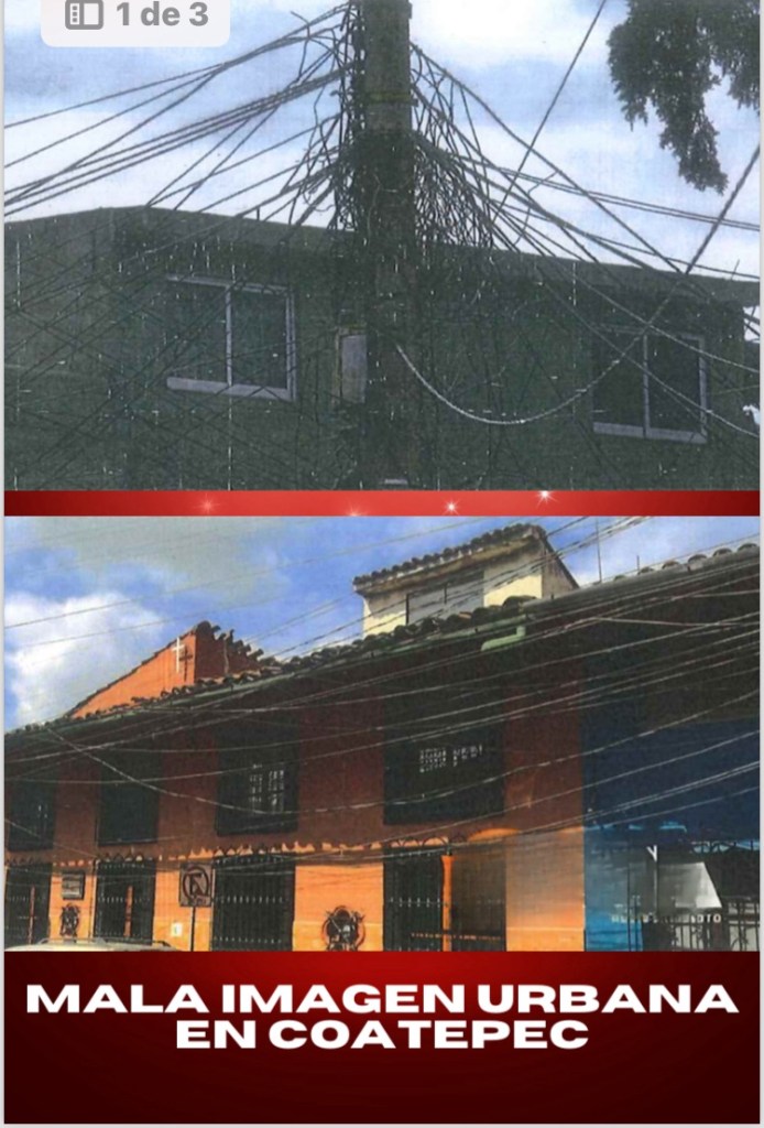 Otro pueblo mágico que registra problemas en su imagen urbana, es Coatepec, el cableado del centro histórico también se encuentra en mal estado, lo que agrega otro motivo de preocupación, es visible y está enredado.