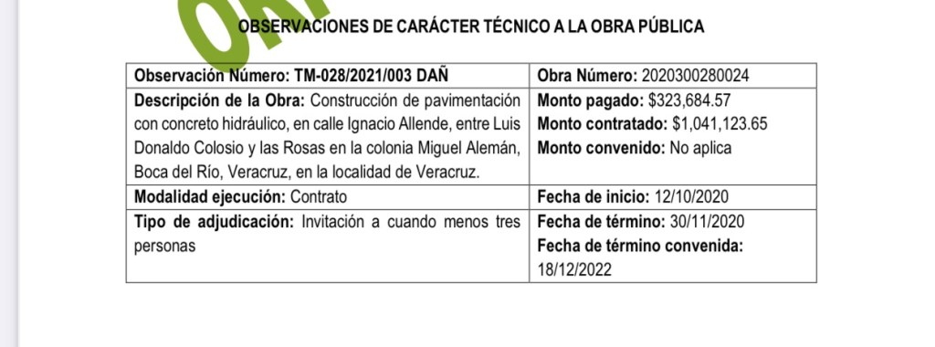 OBSERVACIONES A LA OBRA PÚBLICA