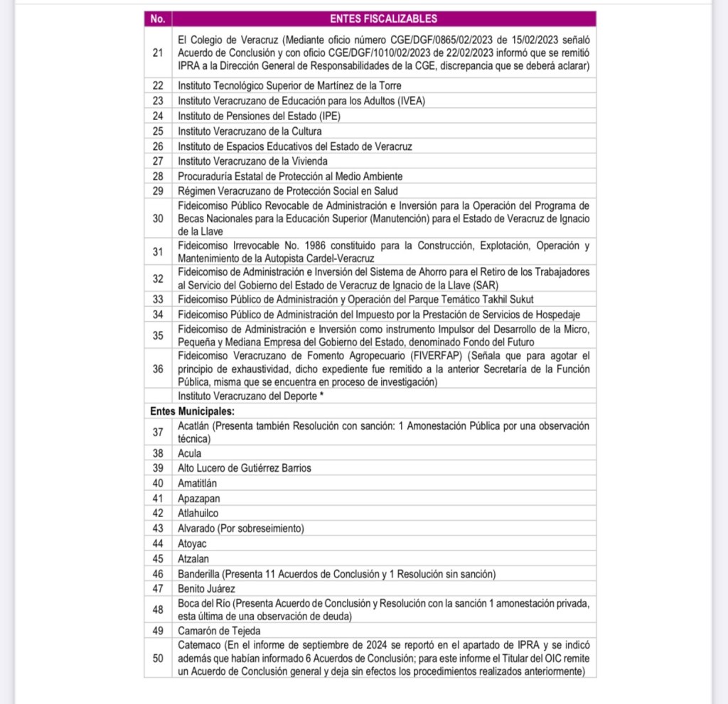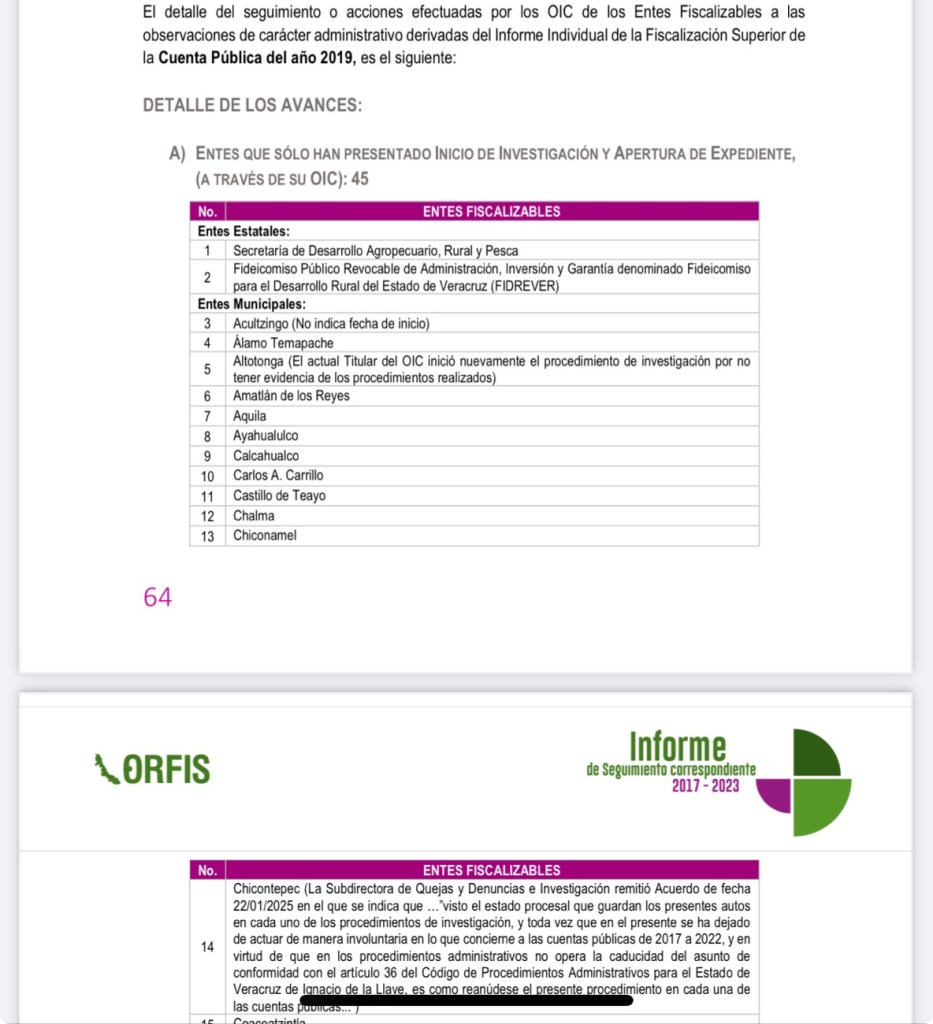 Pero además arrastraba una observación de su cuenta pública del 2019, al concepto de deuda que terminó en sanción y amonestación en privado según el informe de seguimiento de este año 2025.