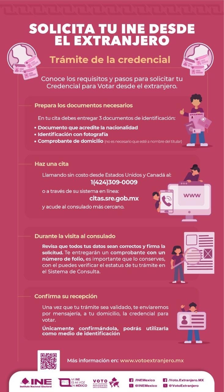 Para mayor información o dudas con la entrega de laCredencial se puede llamar a través de INETEL, al teléfono 1(866)986-8306, desde Estados Unidos, o al +52(55) 5481 9897 desde otros países o bien, escribira inetelmx@ine.mx.