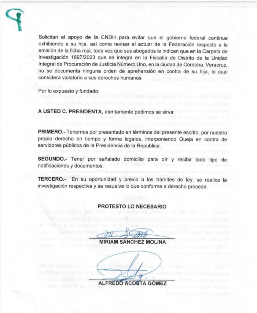 La señora Miriam precisó que acudió a México a la Comisión Nacional de Derechos Humanos (CNDH), donde puso una queja contra el subsecretario Luis Rodríguez Bucio, porque este dijo que su hija estaba detenida; “migración desmiente a la fiscalía, tal cual lo dice el documento el cual ya proporcione: se dijo que mi hija lo llamó para hacerlo salir; y no es cierto, porque mi hija no tenía batería, tan es asi que la misma familia pone de prueba una llamada de 7 segundos, que supuestamente él realiza a mi hija, y no fue asi. Sandra sabe la verdad, y el esposo de Sandra, que estaba con ella. Pero ellos han hecho tanta injusticia contra mi hija que yo con documentos los voy a desmentir”.