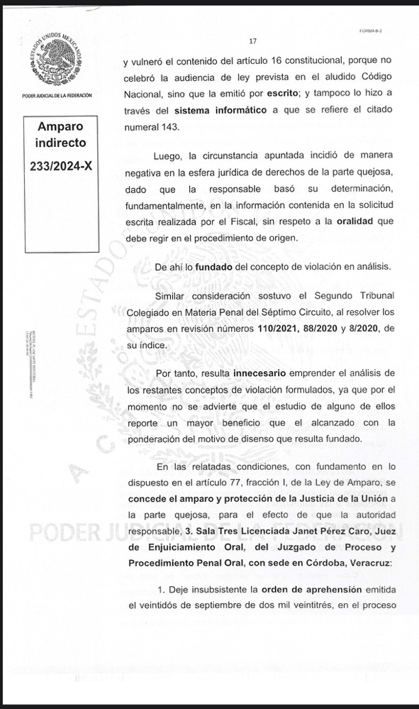 La señora Miriam Sánchez refirió que al enterarse de la orden de aprehensión contra Michell, tramitaron un juicio de amparo, y el fiscal negó haber solicitado la orden de aprehensión, “pero aquí la juez dice; sí lo hiciste y te atribuyo el acto a ti”. Acotó que posterior a esto, se obtiene la orden de liberación; a su hija le dejan insubsistente la orden de aprehensión.