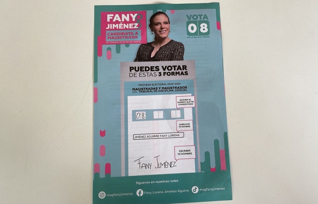 La candidata a Magistrada del Tribunal de Disciplina Judicial; del Poder Judicial Federal Fany Lorena Jiménez Aguirre, la número 08, en la boleta verde menta, explicó que no desparecen las funciones del Consejo de la Judicatura Federal; sino se amplían y se convierte en un Tribunal ex profeso para la evaluación y control de los servidores públicos del Poder Judicial de la Federación.