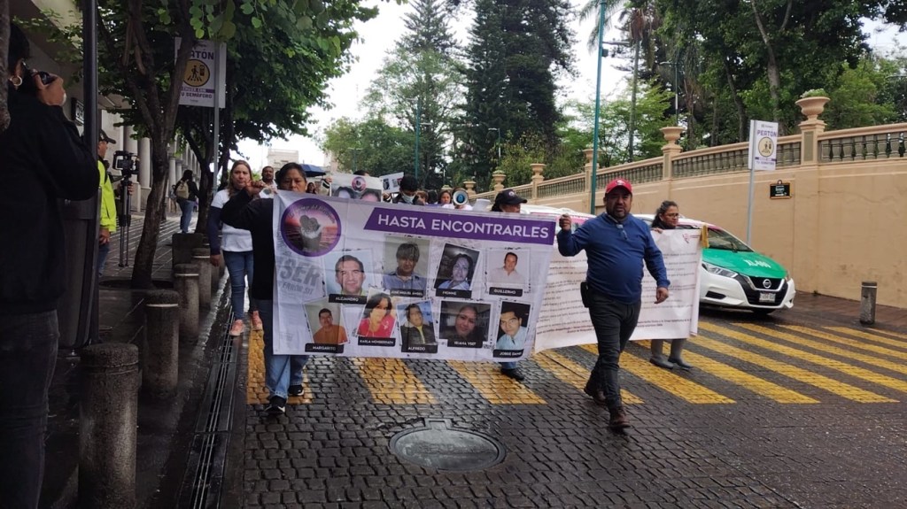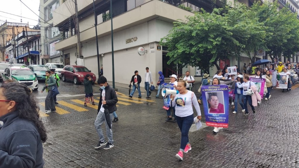 Bajo la lluvia, en el «Día de las Madres», Colectivos como de familiares de desaparecidos Enlaces Xalapa que coordina Victoria Delgadillo Romero y del Colectivo por la Paz que preside Sara González Rodriguez, realizaron una marcha de plaza Lerdo hacia el monumento en memoria de personas desaparecidas de las avenidas Xalapa y Orizaba de esta ciudad capital veracruzana.