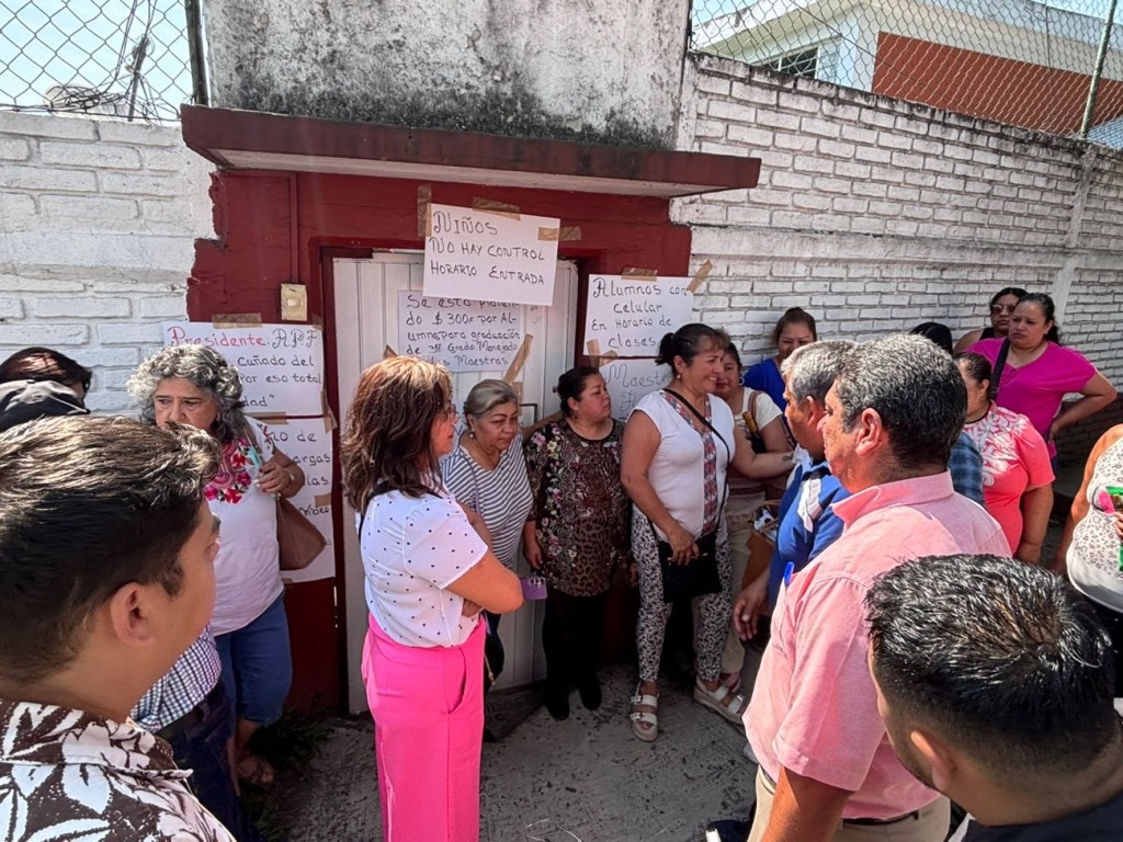 Por casos de extorsión, bullyng y presunta venta de vapeadores y drogas, un promedio de 25-30 padres tomaron la Telesecundaria de Banderilla, Ángel Hermida.