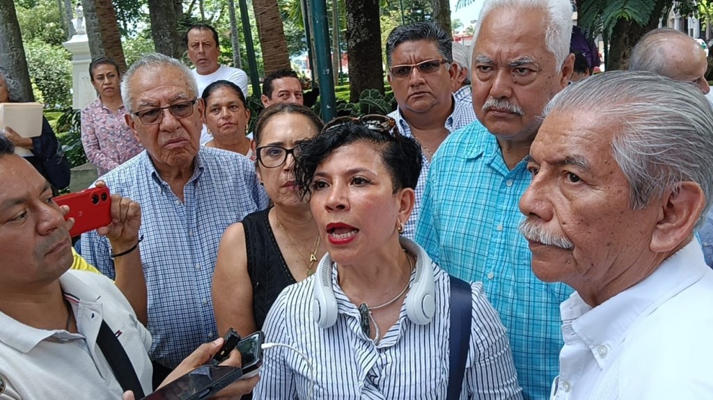Los maestros pidieron audiencia con la secretaria de Educación, Claudia Tello, pero al no encontrar solución, se trasladaron al Palacio de Gobierno para pedir audiencia con la gobernadora Rocío Nahle García.