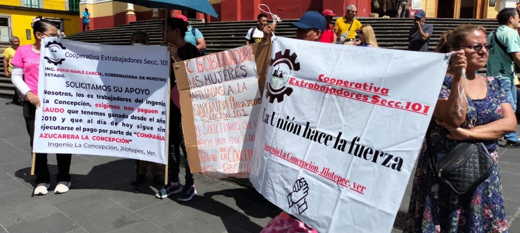 Un grupo de extrabajadores del ingenio azucarero “La Concepción”, perteneciente a la Sección 101 del municipio de Jilotepec, se manifestó este martes en la Plaza Lerdo para exigir el cumplimiento del laudo laboral que ganaron hace más de dos años, derivado de adeudos que datan de hace más de 15 años.