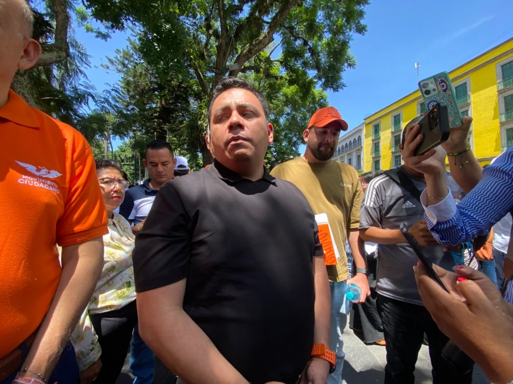 El Partido Movimiento Ciudadano realizó una protesta en la plaza Lerdo de Xalapa, Veracruz, para denunciar la presión política ejercida sobre el Tribunal Electoral de Veracruz (TEV) en relación con la elección de Poza Rica.