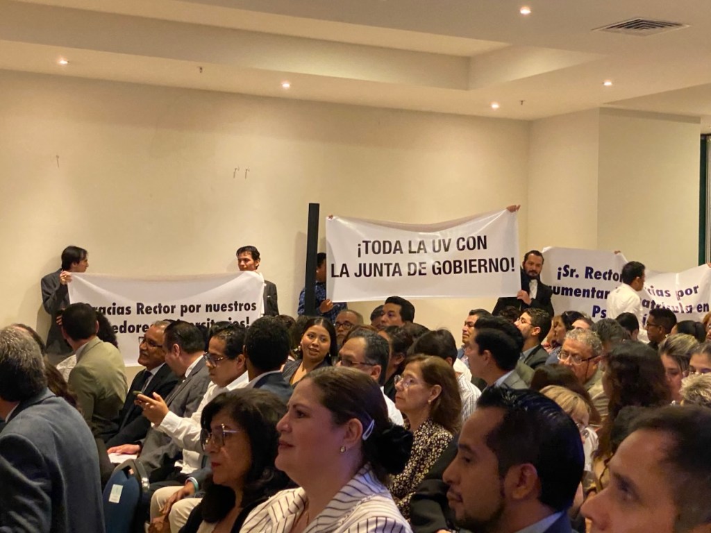 El rector recibió el respaldo de académicos y funcionarios de la Universidad Veracruzana, de dirigentes de sindicatos como el SETSUV y el FESAPAUV, asimismo de estudiantes que acudieron a su informe.