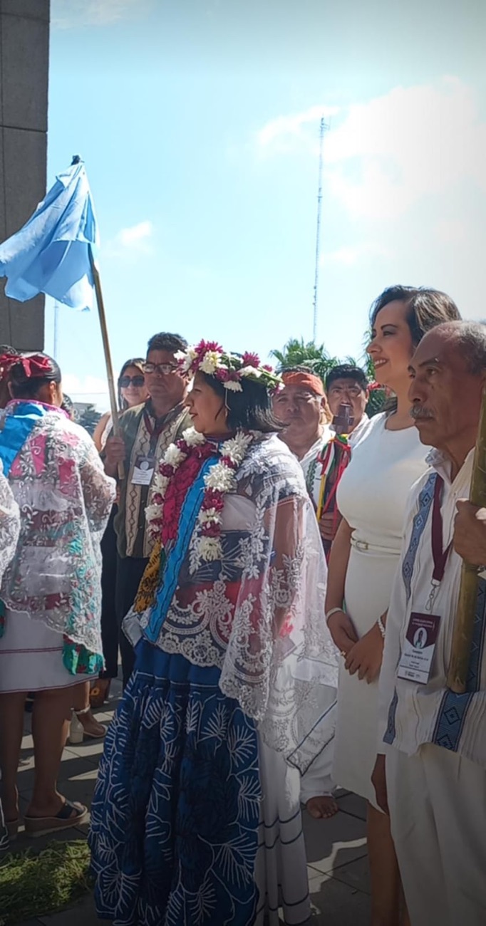 Rosalba Hernández estuvo acompañada de 16 representantes de regiones indígenas de Veracruz, y del presidente de la Junta de Coordinación Política del Congreso del estado, Esteban Bautista, la presidenta de la mesa Directiva Naomi Edith Santos, y del coordinador de la bancada del PVEM, Marcelo Ruiz.