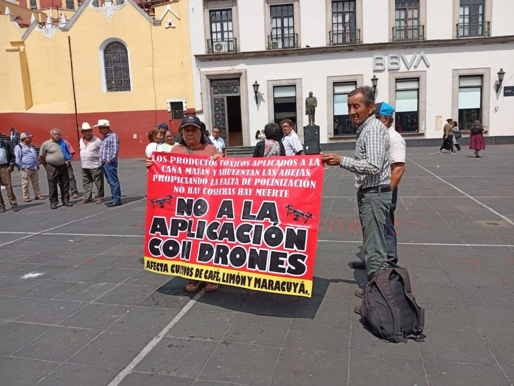 “Esto está sucediendo en toda nuestra región, la zona Coatepec, Las Hayas, Naolinco, hay muchas anomalías, desde 2023 nosotros metimos al ingenio Mahuixtlán, una inconformidad, porque fumigan con drones, es un líquido que en vez de reverdecer como dicen ellos, lo dispersan a 15-20 metros de altura, y pone amarillos los cultivos, están afectando a las abejas y animalitos, estos ingenios lo que están haciendo es destrozar todo, porque amarilla árboles”.
