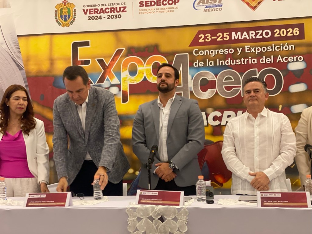 Acompañado del secretario de Economía Ernesto Pérez Astorga presentaron el próximo congreso y exposición de la industria del acero en el puerto de Veracruz, a desarrollarse del 23-25 de marzo que congregará a 2 mil personas relacionadas con el manejo del acero y será detonante de turismo para la zona conurbada.