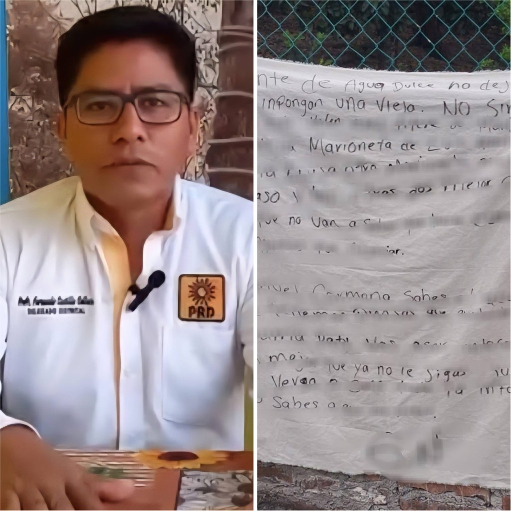 La manta fue colocada en la avenida Miguel Hidalgo, entre 5 de Mayo y 16 de Septiembre, a una cuadra del edificio de la agencia municipal, durante la madrugada. Los vecinos advirtieron su presencia desde temprana hora, lo que generó inquietud entre las personas que transitaban por el lugar.